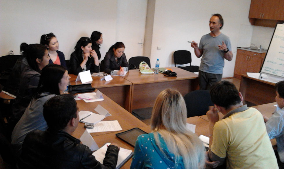 2013: Troisième formation de guide-accompagnateur - Avec la participation de Talant Kirecheev et Florian Barboteau Pour cette édition 2013, ce sont deux dynamiques passionnés de trekking qui se sont occupés de la formation de guide-accompagnateur. Face au succès de cette initiative, puisque 12 jeunes Kirghizes ont participé à cette édition 2013, deux encadrants étaient bien nécessaire pour prodiguer le meilleur enseignement possible. Talant est un guide de montagne déjà doté d'une très grande expérience pour son âge. Originaire de la région de Toktogoul, il parcourt sans cesse depuis de nombreuses années déjà les Monts Tien-Shan. Afin de parfaire son français, et de s'expérimenter à la pratique du ski de randonnée, il a passé les hivers 2011 et 2012 dans les Alpes, entre Vercors et Chartreuse. Florian, également originaire de la Drôme, a décidé de rejoindre l'équipe de guide-accompagnateur pour cette saison 2013, tout en poursuivant ses études en master de tourisme à l'université d'Angers. Il était notamment chargé d'évaluer le niveau de français des prétendants, leur culture générale, mais aussi leurs connaissances dans le domaine touristique. KirghizAsia reste ouverte à toute collaboration avec différentes organisations et compagnies kirghizes et/ou étrangères, ainsi qu’avec des guides professionnels locaux et/ou français. Pour nous l'importance ce n'est pas la quantité de voyages à organiser, c'est la qualité de chaque voyage et les echanges entre chaque voyageur et la population locale. Au Kirghizstan, tant de choses à découvrir au niveau culture, histoire et enfin la nature, mais aussi tant de choses à apprendre pour nous à travers vous les voyageurs !!!