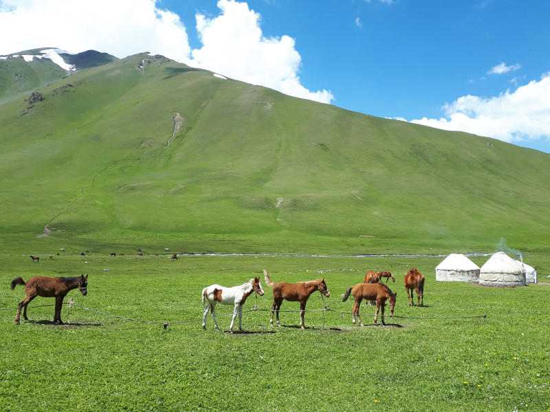 Nous quittons Bishkek en direction de la vallée de Suusamyr. En chemin, nous nous arrêtons au bazar local pour acheter de la nourriture pour les 5 jours de randonnée à cheval. Ensuite, une route intéressante le long du col de Too Ashuu nous attend. Après le tunnel, vous aurez une belle vue sur la vallée de Suusamyr. Nous traverserons la moitié de la vallée jusqu'à Otmok où nos chevaux et notre guide équestre nous attendront. Rando à cheval sur la vallée de Soussamyr.
