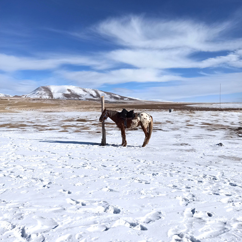 Le deuxième jour de randonnée à cheval, nous allons traverser le dernier bout de la vallée de Suusamyr avant de franchir le col de Jaisan à 3600 m d'altitude. Les grands pâturage de la steppe resterons derrière nous. Après le col, encore 2 heures à cheval et nous serons à notre camp de yourtes.