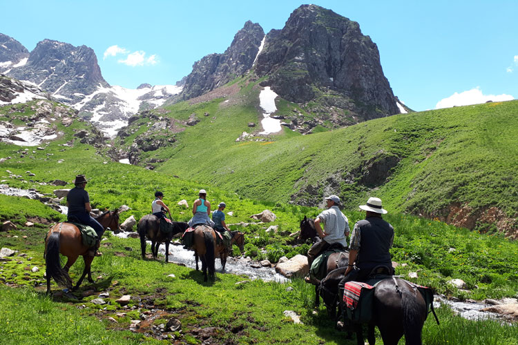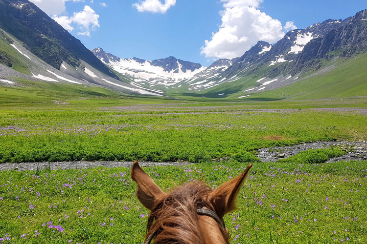 La chevauchée au Kirghizstan est la meilleur façon de parcourir les Monts Célestes, qui abrittent de hauts plateaux à perte de vue entourés par des sommets à plus 7000 m d’altitude. Depuis des siècles les Nomades Kirghiz se déplacent à cheval à la recherche de beaux pâturages. Ce séjour n’est pas seulement un voyage pour découvrir le pays et ses paysages, mais aussi vivre une culture nomade fortement liée à la culture éuqestre et partager la vie des locaux vivant en harmonie avec la nature.